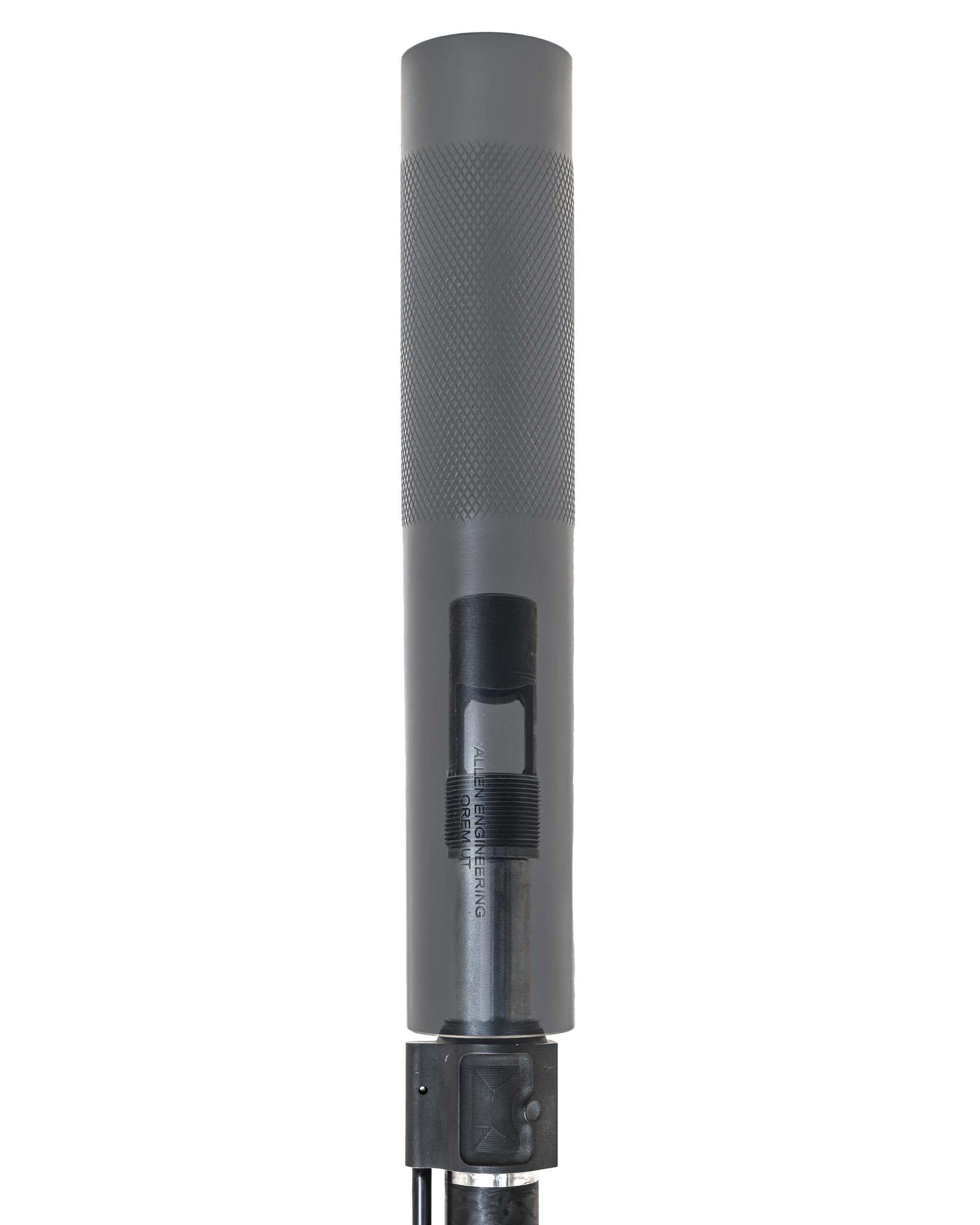 One of the unique feature of Allen Engineering suppressors is the use of the 2-point mounting system. As the suppressor threads onto the muzzle or muzzle device the rear of the suppressor will push up against a taper and aligns itself. This is why AE boast a near perfect return to zero when removing and adding our suppressors.