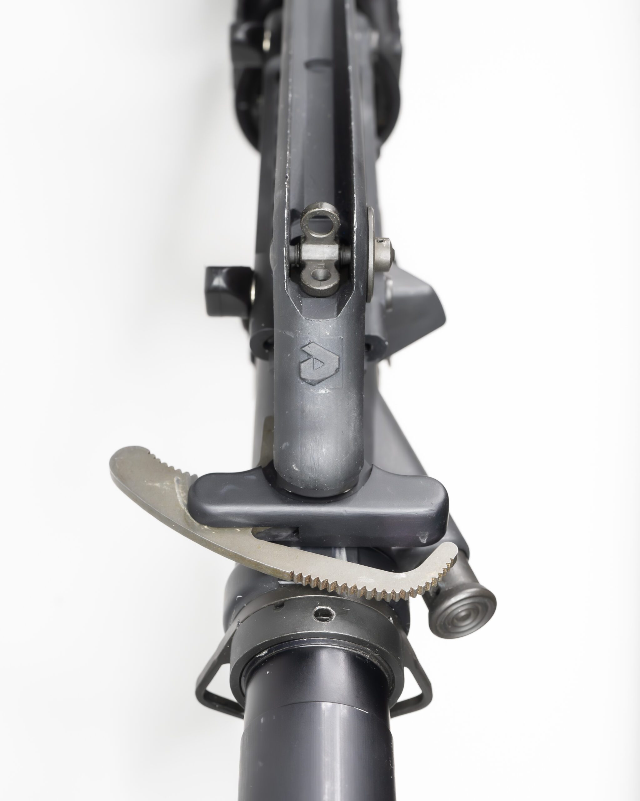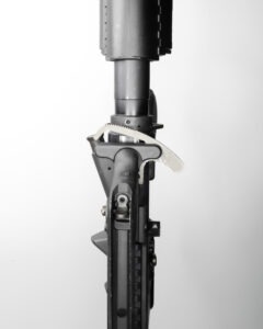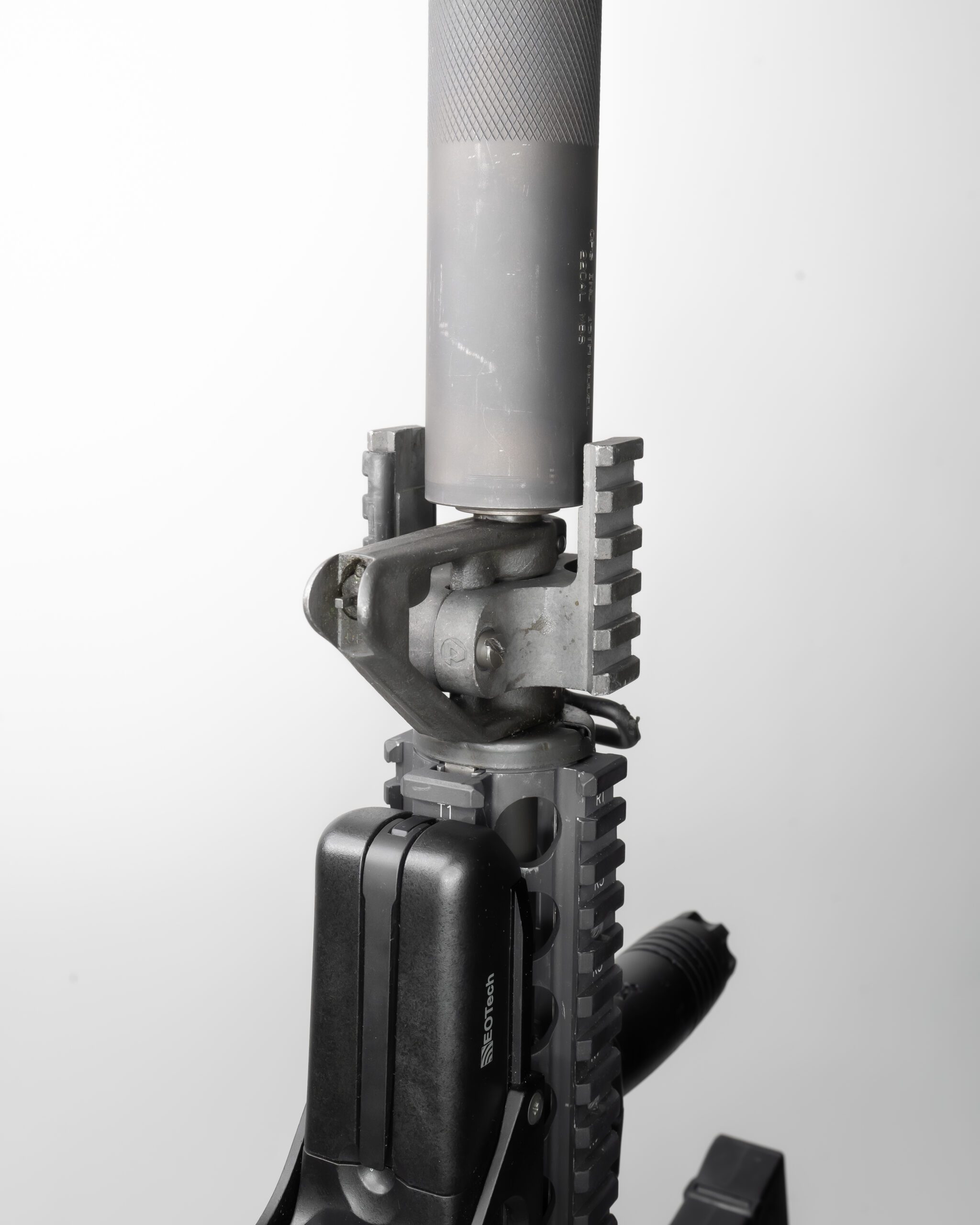 The handguard is a KAC Canadian Contract RAS with the KAC broomstick. The difference between a normal RAS and the Canadian contract is the fact the bottom rail has a clamping screw like the top rail. This was made to ensure a solid lockup for things like lasers or NV devices. What makes this setup peculiar is the Eotech optic pushed out forward onto the handguard. This isn’t uncommon for the time, but we have moved past that as an industry. This is funny since the build had a detachable carry handle making it confusing why the optic was not on the upper receiver. Although the carry handle acts as a rear iron sight allowing the user to co-witness their irons through the optic.