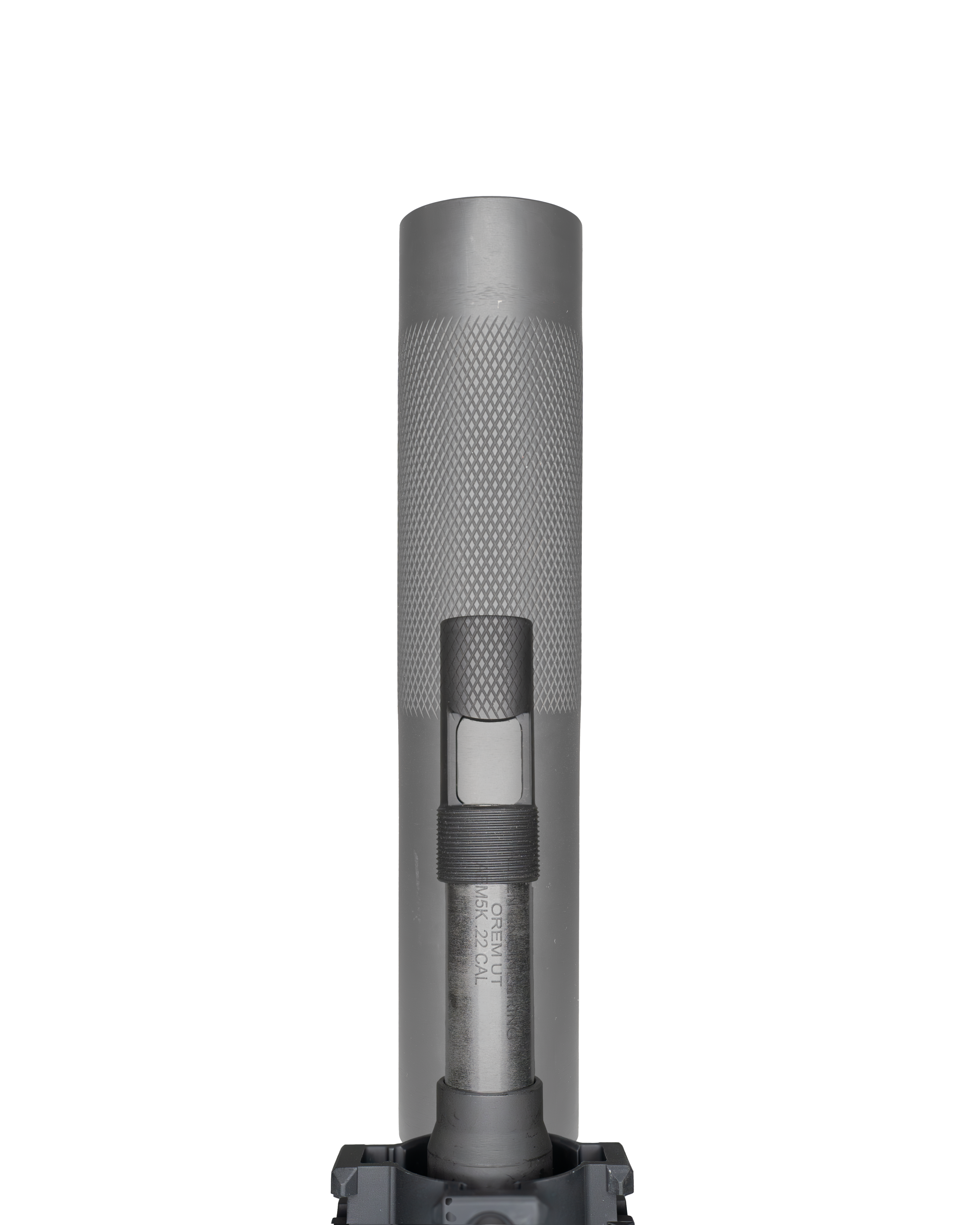 A blend between the AEM5 and the AEM3, the AEM5K features an A-length mount and the shorter AEM3 baffles. This configuration offers a simple swap from a longer A-length can using the same hardware while only being slightly longer than an AEM3. Differences in sound and flash performance between the AEM3 and AEM5K are negligible. While this longer mount does prevent it from being used on as many hosts as the AEM3, the simplicity of swapping between the two is attractive for many people who have only one host but may use a different suppressor for different applications.